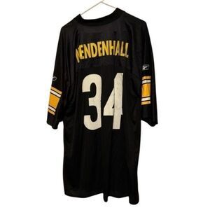 Pittsburgh Steelers Rashard Mendenhall Size XL Reebok NFL Football Jersey. 25” armpit to armpit, 37” long. Name on back has some wear.