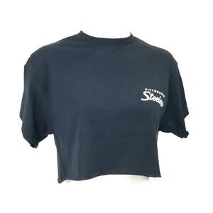 Pittsburgh Steelers Double Script Retro Logo BLACK "Cropped" Crop Top Football Tee. Size: S, M, L and XL