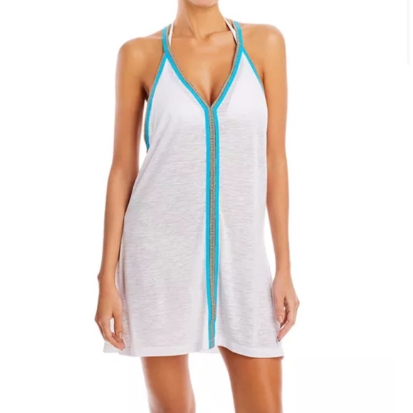 Pitusa Peru white mini swim coverup blue trim standard one size O/S dress