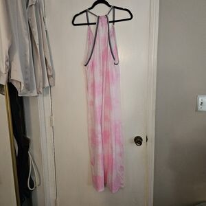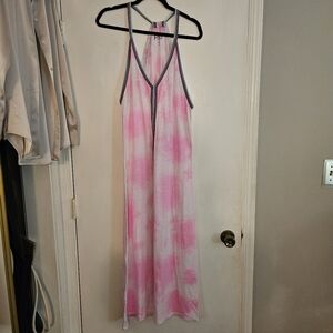 Pitusa pink and white maxi dress cover-up, sun dress, beach wear, light weight, resortwear, vacation, barbie pink