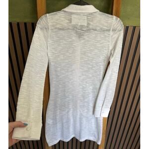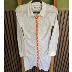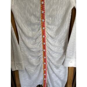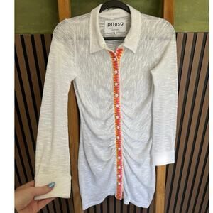 Pitusa Slub Knit Dress Button Down Cover Up Ruched Mini White Pink Size Medium