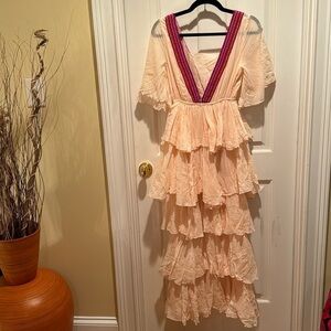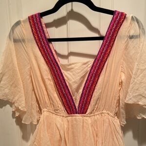 Beautiful dress. Great for the summer. Nice embroidery around the neck elastic band under the bra line