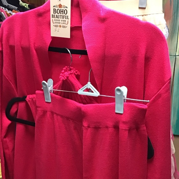 2 pair work out 20 1 top 12 6 pairs m pants 120 3 skirts 75 1 3 pice set pink 55