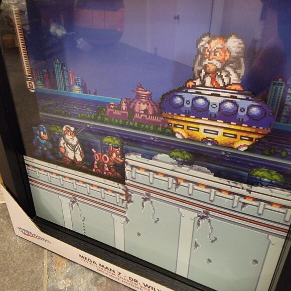 Item: Brand New Mega Man 7 w/ Dr. Wily pixel art scene from the game! Awesome Shadow Box artwork for the serious Mega Man & Capcom fan!