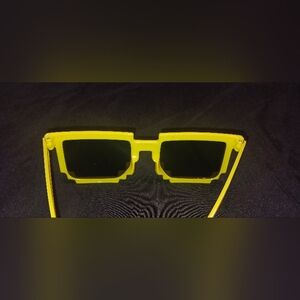 Fun and stylish pixelated sunglasses in a vibrant yellow color. Perfect for adding a playful touch to any outfit. These retro sunglasses are made of plastic.