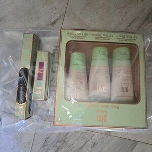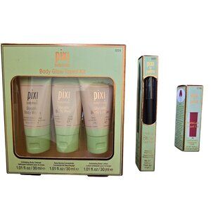 This Pixi By Petra beauty set is an excellent choice for skincare and makeup enthusiasts. It includes a Body Glow Travel Kit, Endless Brow Gel Pen, and Shea Butter Lip Balm, offering comprehensive care for both skin and brows. The set is designed to enhance radiance and moisturize with ease.