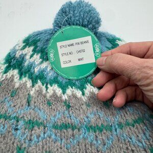 Pixie Beanie By Cold As Ice Women’s Mint Patterned Knit Hat With Pom Pom