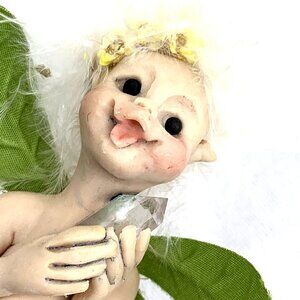 Pixie Fairy Troll Holding Crystal Ornament Handmade Polymer Clay Sculpture 5"