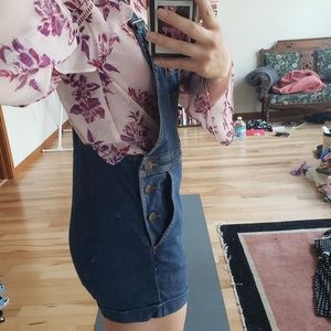 Comfy-cute stretch-denim shortalls from Pixie Market made by Courtshop, marked size xs, can also easily fit s regular and m petite as well. No flaws.