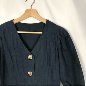 Pixie Market Navy Blue Linen Button Down Short Sleeve Mini Dress S