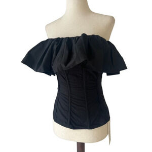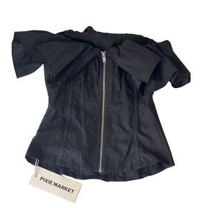 This NWT Pixie Market Ruffled Corset Top features a ruffled neckline, corset fitted bodice, and exposed back zipper closure.