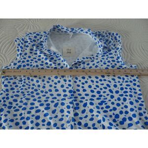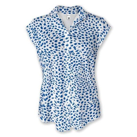 PixieLady White & Blue Abstract Cap-Sleeve Button-Up