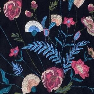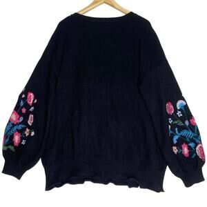 Pixley Black Embroidered Floral Sweater Womens Lg Viscose Cozy Soft Cottage Boho