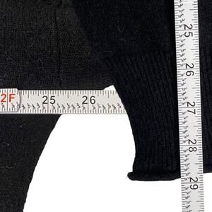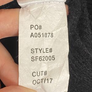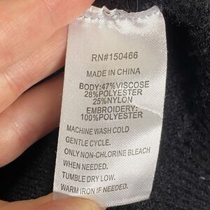 Black sweater shows minor signs of wear (fuzzies that are hard to see) but embroidery is in excellent shape. Overall the sweater is in great pre-owned condition.