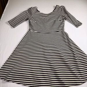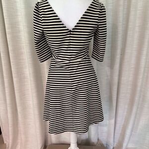 Pixley Dress Medium Kathy Striped Fit & Flare Black Cream Skater Black White