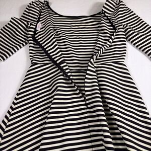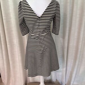 Pixley Dress Medium Kathy Striped‎ Fit & Flare Black Cream Skater Black White