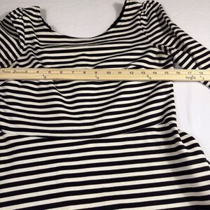 Classic black and white striped dress by Pixley Size Medium with a flattering fit-and-flare silhouette Soft and stretchy fabric for all-day comfort Features a sweetheart neckline for a feminine touch Elbow-length sleeves offer a bit more coverageperfect for layering Nautical-inspired style, great for work, weekends, or casual events Versatile piecedress it up with heels or keep it cute with sneakers Measurements in photos. Thanks for stopping by!
