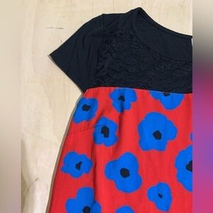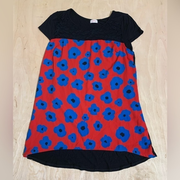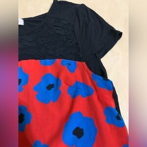 Good condition top. Lace shoulder detail with bright floral pattern front. Size medium.