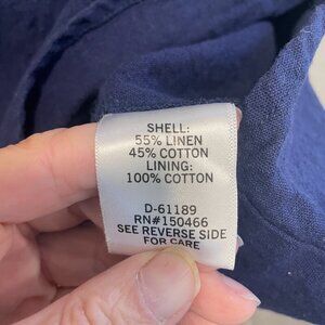 Excellent condition scallop hem spaghetti strap fit and flare style dress in navy linen blend from Pixley. The Crissie dress size small