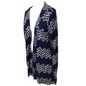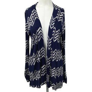 Pixley Open Front Cardigan Size M Stitch Fix Waterfall Chevron Long Sleeve Blue
