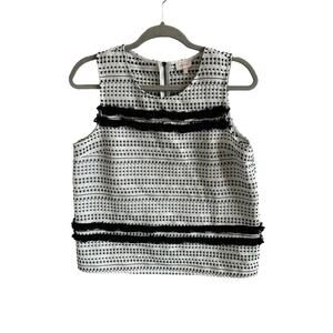 Pixley Women's Medium White and Black Sleeveless Formal Peplum Blouse