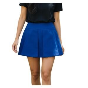 Pixley Women's Small Solid Cobalt Blue Selena Pleated Short Mini Zip Up Skirt