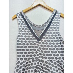 Pixley Women's Textured A-Line Midi Dress Size M Gray White Geometric Sleeveless