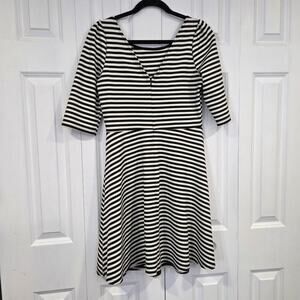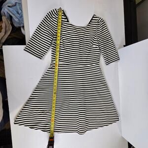 Pixley by Stitch Fix Kathy Black Striped Stretch Fit & Flare V-Back Dress Size M