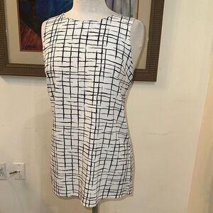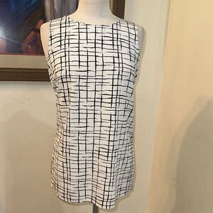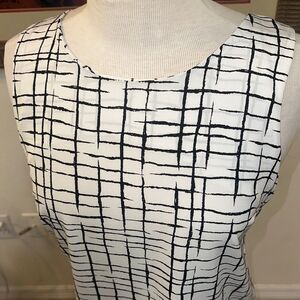 So cute! Stylish sleeveless top with a black grid pattern on white. Perfect for casual or formal wear. Excellent condition!
