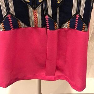 Tank top made of rayon. Top is navy blue with triangle shapes. And bottom in hot pink. Worn once. Pet and smoke free home. VD.