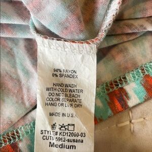 Multicolored shift dress with chevron design and 3/4 sleeves. Elastics at the end of each sleeve and in great worn condition.