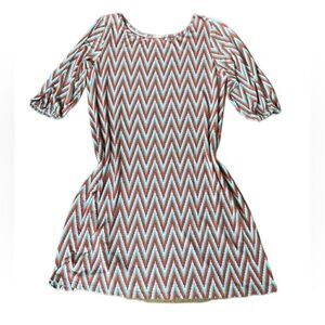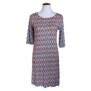Pixley Multicolored Chevron Designed Shift Dress w/ 3/4 Sleeves Size: Med