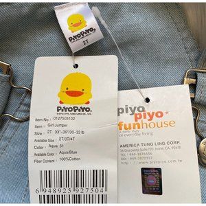 New with tags. Piyo Piyo Duck Baby Toddler Blue Overalls Dress, Size 2T. Material: Cotton