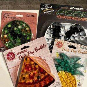 Pizza, Pineapple, Camouflage & Controller Pop-It Toys (Lot of FOUR) (new)