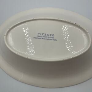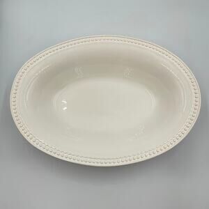 Pizzato Hand Made Beaded Edge Italian Ceramic Serving Bowl White Oval 14.5"