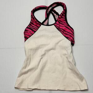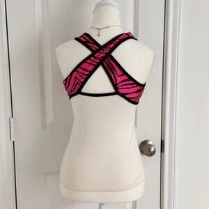 Pizzaz Vintage Size Medium Women’s 90% Cotton Y2K Pink Zebra Print Fitted Tank