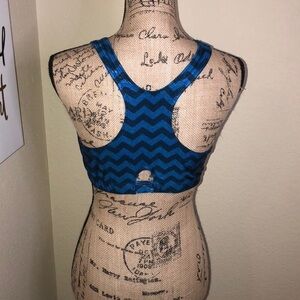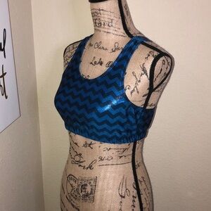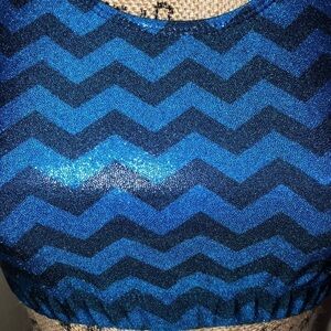 Pizzazz Blue & Black Chevron Striped Cheer/Dance Top with Sparkle to it Size L