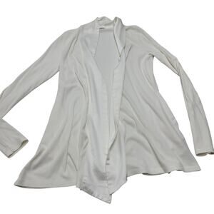 Pj Harlow Shelby ribbed knit satin front open cardigan waterfall cream
