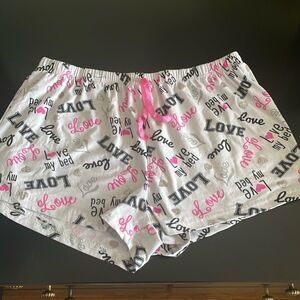 Pj pajama bottom shorts colorful pink love my bed glitter heart size XL