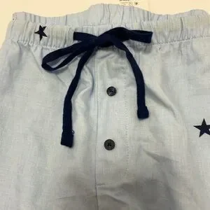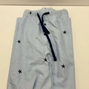 Light blue pj pants with dark blue stars. Tee short material. Wide leg.