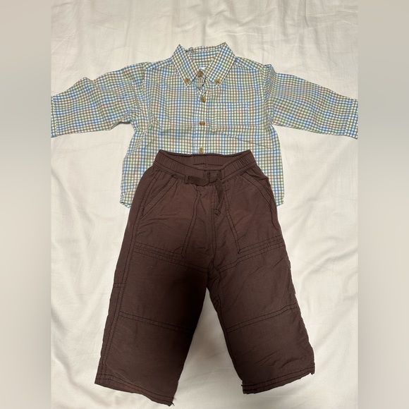 This is not a set but i make them like a set. Two different brand Top is from children place and pants from gymboree. I use it like a set. Very clean. Top is size 6-9 bottom is size 6-12
