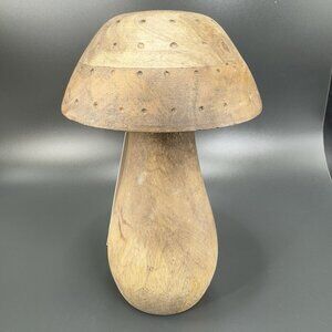 Place And Time Wooden Tall Mushroom Primitive Style Wood Figurine With Labels