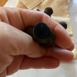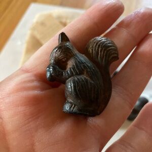 These little squirrels need a home that will actually use them. They are petite and the card goes into the tail. They are a solid weight and have felt on the bottom. Made in India. The photo makes it look like there is a spot on the ear but it is just the light. They come in a little sack. I have the tag but it is not attached. Perfect for fall and Thanksgiving. Preowned