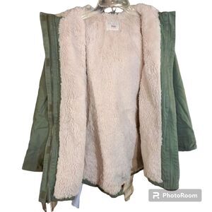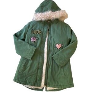 Place Girls Green Fur Lined 2 Pocket Long Jacket Sz L 10/12