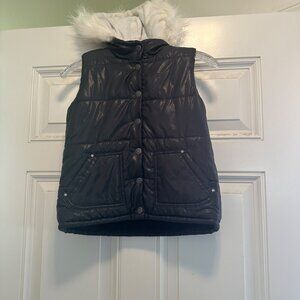 Place Girls Hooded Button Down Vest Size M7/8 Navy Polyester