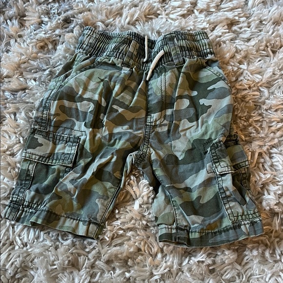 Comfortable cargo shorts with a green camouflage pattern. Ideal for everyday wear.