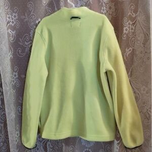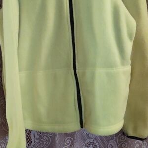 Place neon green black accent kids size 10 to 12, long sleeve with thumb loops, fleece zip front jacket pockets, excellent condition