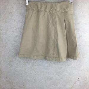 KEY WORDS: Tan Pleated Skirt, Uniform Skort, Shorts Lined, Adjustable Waist, Side Zipper.