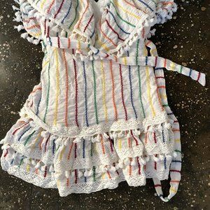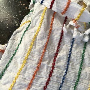 Embroidered gauze fabric with tassel trim