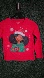 Bright red long sleeve tee with a cute holiday graphic. Features a cheerful character and snowflakes. Ideal for festive occasions.